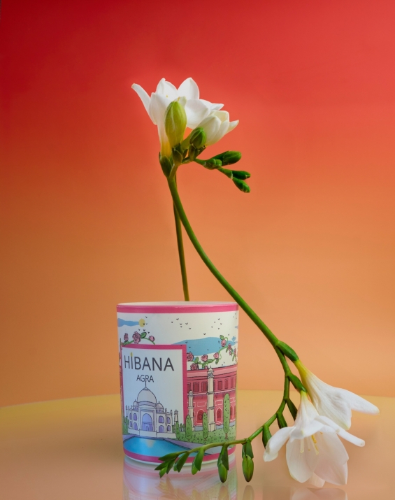 La bougie Agra rend hommage à la splendeur et à la poésie de l’Inde. Son design, réalisé par une illustratrice au style graphique inspiré de la bande dessinée, dévoile un Taj Mahal majestueux, entouré de teintes vibrantes rappelant la splendeur des jardins fleuris qui bordent les palais. En premier plan, un bassin d’eau reflète l’édifice iconique, bordé de verdure luxuriante et de délicates roses qui reflètent l’élégance des jardins moghols.
